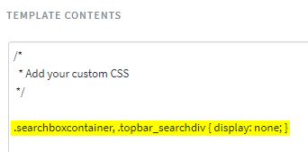 Click on the template name ("customcss", in this example) to inspect its contents. In the example below, the highlighted code makes the search bar invisible in the help center: